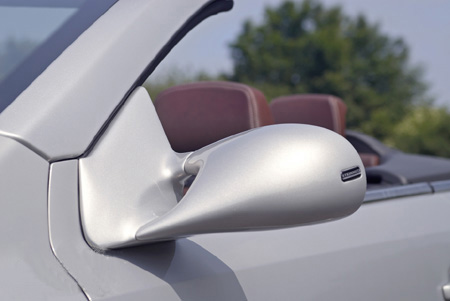 首先在車頭方面,原有的進氣柵被一款黑色的蜂巢式進氣柵所取代,去掉了原先的鉻合金前桿和車標。此外,又加進了車側裙、Steinmetz特制的后視鏡還有兩個新型后尾翼。在這些改進中,這款新型后尾翼是Steinmetz用過的最長的尾翼了。這款車還安裝了18英寸的Steinmetz ST4輪胎。