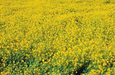帶著綠色,帶著溫柔,帶著讓你想溶進去,醉進去的那種懶散。此刻,與車飛奔,你會想起什么? 是童年時放上天空的風箏,是與情人幽會時的清香,是你經常走進的那間不知名的小西餐吧里悠遠輕揚的小提琴聲,或者是…… 陽光下,那片奪目的黃正如綠野上的一片野菊花,它的深邃在陽光下流動,它的風采在綠意里飛揚。 在無邊無際向你圍攏的綠色中,它用自己活力的姿態沉靜地享受著大自然的嫉妒,我想起蒙娜麗莎的微笑,那是可以穿透時空的恒美。