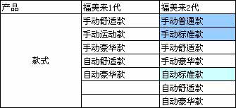 根據公布的數據顯示,福美來2代將供應7款新產品,比先前福美1代的5款產品有所增加。但是產品系列主要是增加了普通和標準款,這意味著福美來2代的細分市場將向下延伸。福美來的競爭對手,也將由伊蘭特、凱越、賽拉圖等擴展到勁取、思迪、駿捷、雅紳特、樂風等更多競爭對手。
