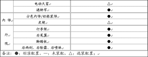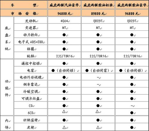 表為威虎皮卡配置價格表