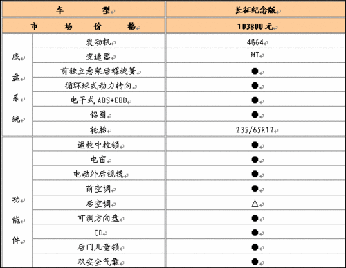 表為無限長征紀念版配置價格表