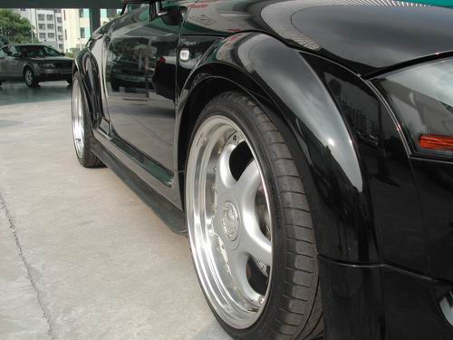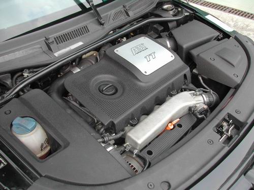 原廠的 TT coupe 有兩種動力搭配:180 匹的五前速前驅車,發動機的壓縮比為9.5:1,225 匹的 1.8T 渦輪增壓版,MOTRONIC ME 7.5 供油系統搭配原廠的 K03 號渦輪增壓器,車頭左右各有一副小型中冷器 intercooler 為進氣降溫,由于采用高增壓設定,壓縮比調低至9.0:1。而最大的不同則是采用了六前速密齒比手動變速箱和奧迪獨有的quattro 全時四輪驅動。225匹車型與180匹車型從車尾一看便知,因為180匹車型為單排氣管,225匹則是左右各一排氣管的設計。