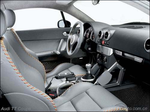 輪圈采用的是鑄鋁 8X18寸的9條幅輪圈,輪胎則是 225/40R18 的,如此的搭配使得整車看起來四平八穩的,非常具有動感。氙氣頭燈的邊緣采用鈦金屬顏色的修飾,后輪側面板上的 S line 標識使得該車與普通版的 TT 車型明顯區分開來,除了原來標準的車身顏色外,還有 Misano紅以及 Avus銀供選擇。