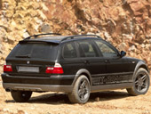 在“適合任何道路任何天氣行駛”這一主題的指導下,專門改裝寶馬車的車廠AC Schnitzer的工程師和技術人員開發了一套全新的底盤和符合動力學的引擎系統,這就是圖片中的這款 X-ROAD。這項復雜的開發工作也是原來的寶馬 3 系 E46 開發的延伸,因為 X-ROAD 有許多的組件與AC Schnitzer改裝的 3 系是通用的。這次的改裝還包括懸掛系統的調校,這樣車身的離地距離提高了30mm,更加符合寶馬 X 系列全地形通過的能力。為了與提升后的懸掛相配合,輪圈與輪胎都進行了相應的調整,輪圈是AC Schnitzer開發的第三代 8.5J×17" ET 43 合金輪圈,輪胎則是 225/55 ZR 17 全地形輪胎。車體也進行了修改,不但是高度增加了30mm,寬度也增加了20mm,為 3 系設計的空氣動力性能經過了適當的調整以適合新的 X-ROAD 車型,前保險桿和后裙腳給該車提供了良好的保護。正如我們所說的一樣,X-ROAD 有許多的組件與AC Schnitzer 是共用的,例如用特種鋼材料制成跑車消聲器和合金的排氣管,懸掛則使用了鋁質材料。在車的內部方面,也采用了大量的鋁質材料、碳纖維和皮革的座椅等等,另外還裝備了特殊的語音導航系統和多功能顯示屏,目的是解決任何在行駛過程中可能發生的問題。