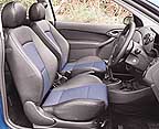 ST170車廂的可觀性十分高,包括一對由真皮和布料合制的桶椅和充滿跑味的白底儀表板,配上ST字樣,彰顯它的高性能形象。不過車速表的設計,以英里車速為外圈顯示,內圈則是公里車速刻度,在閱讀時需要花時間適應。在儀表的左方,SVE特別裝上一對雙偈油壓力和溫度小圓表,讓駕駛者進一步清楚引擎的運作情況。波棍和腳踏使用鋁合金物料,再度散發ST170的高性能跑車風范。后座三個座位設有獨立頭枕和三點式安全帶,至于四個安全氣袋、恒溫冷氣系統、六碟式CD音響、尾翼、前后霧燈和Xenon白光頭燈連清洗裝置,也是標準裝備。