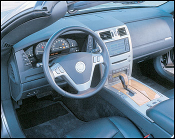 內飾方面,卡迪拉克CADILLAC XLR的舒適性和質量可以和奔馳的SL500相媲美,不過其駕駛室前部的儀表臺要比奔馳SL500簡潔一些,輪廓線條也相對平緩一些。在車門、方向盤、變速桿和一些放置雜物的地方都配以金黃色或暗紅色的木質和鋁合金裝飾物。另外XLR更跳脫傳統卡迪拉克CADILLAC美式內飾的格局,外加了抬頭顯示器與可變式定速系統。當卡迪拉克CADILLAC的頂蓬放下時,可以感覺到車內的空間非常的寬敞,不過通用公司介紹說,就算是打開頂蓬時,也可擁有寬敞的室內空間。