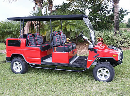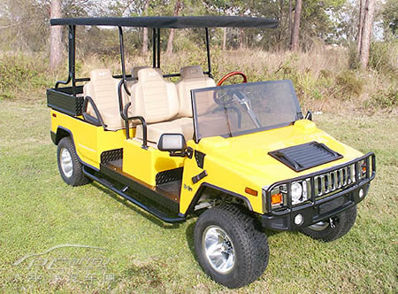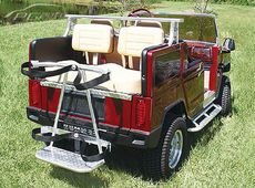 林子大了什么鳥都有,大家都知道高爾夫球場更是眾多名流云集的地方,一家來自于美國拉斯維加斯的汽車改裝公司深諳此道,把這兩者結合,給你提供訂做的悍馬H2高爾夫專用車,加裝了霧燈,儲備后箱等裝備,不過,對于高爾夫球場那么點的崎嶇路形,用得著派上這么彪悍的車型么?但是,車已經造出來了,想訂就訂,不需要理由。