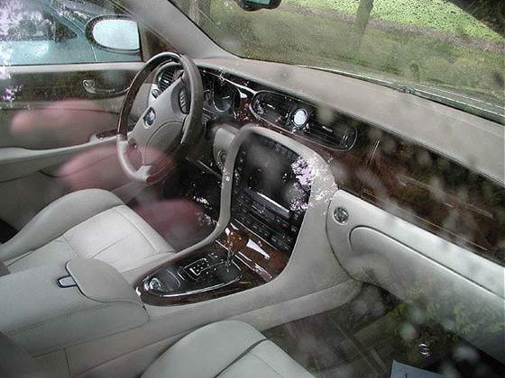 最重要的是,新的 XJ 解決了車內空間不足的缺點,雖然新車的長度沒有增加多少,可是軸距的增加和車頂高度的增加提供了更大的車身內部空間,尤其是后座的空間。新款與舊款的區別非常明顯:新款的具有更高的腰線,更高的車頂,更大的車頭引擎蓋。盡管下過雨,從隔著車窗拍攝的汽車內部照片可以看出,車內采用了皮革座椅和大量的桃木裝飾,儀表板采用了打磨過的桃木,車內的一些必備設備:衛星導航系統,通信系統都是通過位于中央控制面板的觸摸屏幕來操控的。小巧的電子手剎控制桿,排擋桿以及中控板都和新的 S-Type 如出一轍,一些電器設備的開關也采用了 S 系列的設計布局。