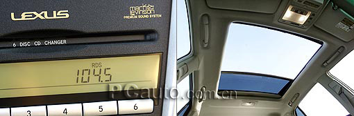 不論是精致的皮椅、木紋飾板的選色與組裝,在在都能散發出高貴的質感。RX330 除了基本各種電子設備之外,還可選配前座 DVD 衛星導航系統、后座 DVD 視聽娛樂系統、發燒級音響名廠 Mark Levinson 11聲道前置六片裝 CD 音響等,讓 RX330 的車主能在車上享受與家中一樣高質感的原音重現。但不論那一種選配,都比不上起超大尺寸天窗所帶來的感動。橫貫前后座的大尺寸天窗,帶給所有乘員一致的陽光的新鮮的空氣。這種技術精進所帶上的超凡感受,自然對 RX330 車主而言,便是最好的尊貴禮遇。