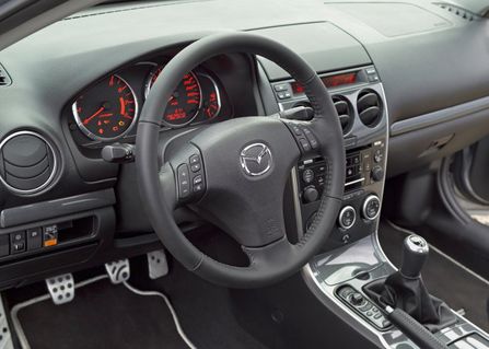 06款馬自達6 MPS——6系的最新車型。馬自達6 MPS是獲獎無數的馬自達6在技術和品質方面的進一步延伸,不過遺憾的是我們國內的網友還暫時無緣這款高性能版本的馬自達6 MPS。馬自達6 MPS采用MZR 2.3 DISI*引擎(渦輪增壓),最大功率191千瓦/5500rpm,最大扭矩380牛米/3000rpm。不用想了,百公里加速時間只有6.6秒,最高時速高達240公里每小時,而代價僅僅為每百公里10.2升的油耗,不心動都不行。就讓我們用眼睛來體驗一下它吧。