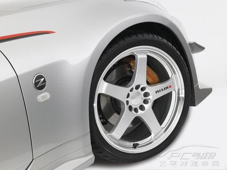 除此之外,NISMO 350Z同時還使用了高性能的離合器,5輪輻輕質輪轂,規格分別為前輪19" x 8.5J,后輪19" x 9.5J,分別配備245/35ZR19和275/35ZR19的普林斯通 Potenza S-03 輪胎。