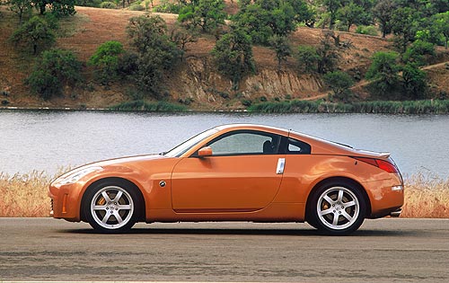 因此,Z系并非一輛真正前中置引擎的汽車,但他以這種緊湊的引擎布置方式作為該車的炫耀之處,2650mm的軸距,很寬的輪距以及很短的懸垂(整車長度4310mm),前后重量比為53:47。與91'款的300ZX相比較,整車長度基本不變,但獲得了更好的前后重量比和加長了軸距,新的平臺(tái)同時(shí)增加了350Z車身的剛性。
