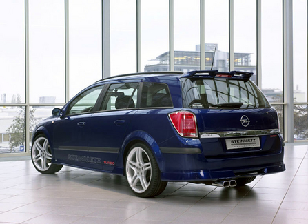改裝雅特引人注目的外觀之一是其蜂巢式的前格柵。而在Astra的設計中,汽車標志的上下各放置了一塊。這兩塊前格柵一起使得Astra看起來更具威力并給出了歐寶一個全新的、獨特的外貌。Steinmetz改裝將左右兩則的前格柵做得更低了,并且加強了空氣入口的設計,這樣不僅增加了Astra的外觀,同時也給剎車閘提供了更多的冷空氣。車身的裙邊設計使車子整體看上去更低,其反光鏡的設計也獨具匠心,與Astra整體風格十分協調。