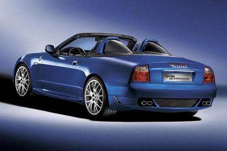 這款特別車型是以“瑪莎拉蒂·蜘蛛”為基礎車型,更注重駕駛樂趣以及行走性能。外部裝飾方面特別追加了前保險杠以及側保險杠,使得運動性能更進一步得以體現。車身特別追加了新顏色Blu Anniversary以及Grigio Touring兩種,在全世界限量發售180臺,國外折合售價為含稅118萬6千人民幣。