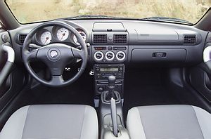 新的 MR2 Spyder 在車廂布置方面也更顯精致度和運動本色,如行車儀表和空調控制的重新布局、鍍鉻飾條的使用。車廂內可選用褐色或黑色的皮革,并與車篷顏色相配。