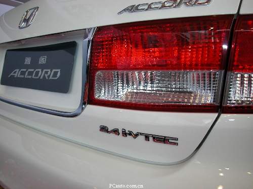 尾部的特寫,技術的標志出現在了尾部的文字中,顯示出廣本對其技術的自信。I-VTEC技術(VTEC+TVC)代表Honda先進發動機技術的VTEC(Variable Valve Timing and lift Electronic Control=可變氣門電子控制系統)和能夠控制進氣門的開啟關閉使其保持最佳狀態的VTC(Variable Timing Control=可變正時控制)技術。