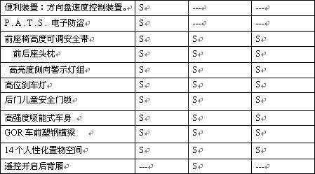 “S”表標配,“---”表未知