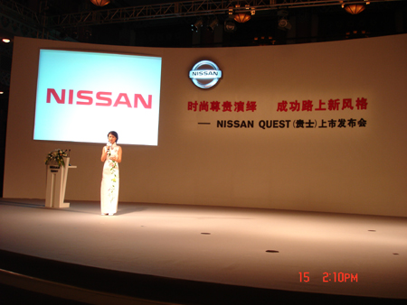2005年9月15日,日產汽車(中國)有限公司董事總經理萱島幸久先生在北京宣布,NISSAN高端MPV QUEST(貴士)正式登陸中國市場,定價為45.8萬元,在同級別車型中具有相當的競爭力,預計年銷售目標4000臺。不到三個月的時間,NISSAN連續發布了FUGA(風雅)和QUEST(貴士)兩款不同概念、針對不同消費者的高端車型,強勢進軍豪華車領域的戰略布局使得NISSAN的產品線更加豐富。