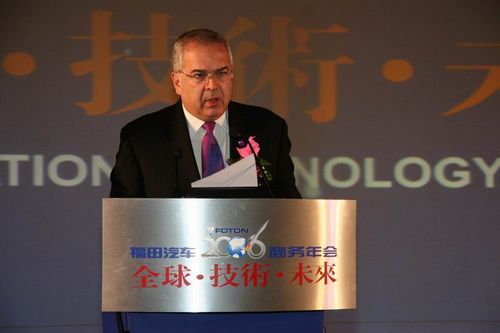 在2005年12月26日召開的福田汽車2006商務年會上,兩千多位與會代表齊聚一堂,共商未來大計。尤為引人關注的,則是聚集在千人大會場中的數(shù)十位海外代理商。當來自俄羅斯、烏克蘭、巴基斯坦、阿爾及利亞等不同國家的數(shù)家海外優(yōu)秀代理商,與國內的優(yōu)秀合作伙伴一起登上主席臺,從福田汽車總經(jīng)理王金玉的手中,接過本次年會的優(yōu)秀服務商大獎——國產(chǎn)寶馬車的鑰匙時,場上的氣氛達到了高潮。隨后,更讓人感到新奇的事情發(fā)生了。現(xiàn)任哥倫比亞大使Guillermo R. Velez先生登上福田年會主題大會的演講臺,向到會的海內外福田汽車員工和合作伙伴代表發(fā)表了熱情洋溢的演講。
