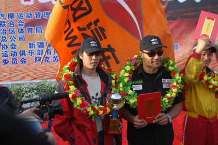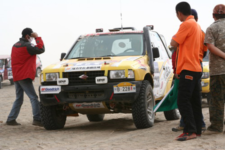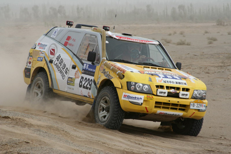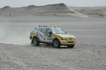 3號營地到36團的230公里第二賽段是穿越羅布泊無人區,還可遠望阿爾金山,且末到民豐的350公里的第三賽段,則是真正的環塔克拉馬干沙漠賽段,沙石、戈壁、長距離,開始全面考驗車輛性能、裝備配備、車手掌控判斷等綜合實力,陸風車隊憑借陸風X6的優良性能,精心的改裝,卓越的維修后勤保障,國內知名的越野賽手,和2005年成功穿越羅布泊和騰格里沙漠的經驗,一路領先,分別由張洛維駕駛的228號和李繼程駕駛的229號賽車奪得賽段冠軍,而此時,已經有近一半的賽車因為各種原因遺憾退出了比賽。5月8日結束的最后賽段是傳統的和田河賽段,河床、流沙、不經意的溝坎都不可輕視,暗藏殺機,一不小心,任何一個障礙都可能結束整個賽程,即使兩岸風光無限,賽手們也都無心欣賞。