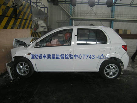 據中國汽車技術研究中心的碰撞試驗結果表明,威志轎車的正面和側面碰撞指標分別滿足了國家現行的《乘用車正面碰撞的乘員保護》GB 11551-2003和《汽車側面碰撞的乘員保護》GB 20071-2006標準,并且實測數據遠低于法規要求;后碰撞指標全面滿足國家《乘用車后碰撞燃油系統安全要求》GB 20072-2006的要求,在碰撞過程中燃油系統未發生任何液體泄露,且后風擋玻璃完好;40%偏置碰撞指標全面滿足C-NCAP的要求,其中多項指標小于C-NCAP系列評價的最小值(五星級)。