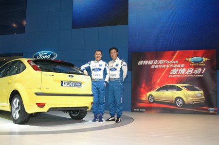 今日上午10時,廣州車展2A館福特展臺星光閃耀。昨日剛剛向中國消費者亮相的福特福克斯兩廂及在今年全國汽車場地錦標賽(CCC)中屢創單圈最快速度記錄的福克斯賽車,成為全場矚目的焦點;駕駛福克斯賽車,并在全錦賽中取得優異成績的長安福特車隊主力車手馬漢華和李萬祺,身著專業賽手服出席啟動儀式,更是將現場氣氛推向最高潮。