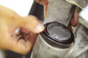 在同一臺速騰車上,維修人員也同時拆卸了該車的前剎車分泵,與后剎車分泵出現明顯的滲漏不同,該車的前剎車分泵皮碗處看不到任何油滴,用手觸摸也沒有明顯的濕油感。