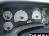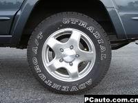 在時速80公里左右時就可聽到較大的噪聲,這也是越野車的通病,可與老切諾基相比,發動機的噪音還是下降了不少。JEEP2500的一大特點是在低速時就可提供較大的扭矩輸出,這一點我們在隨后的越野賽道上有了真切的體會。試車賽道上有陡坡、大坑等各種路況,不時還有大石頭擋路,所以車速只能在20到40公里,但就在這種低速行駛的情況下,JEEP2500的通過性能出色地表現了出來。