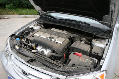 中國獨有的賽拉圖1.8將裝備和伊蘭特1.8相同的發動機,而賽拉圖1.6則繼續使用和國外版本相同的1.6升排量DOHC發動機。這種發動機也裝備在千里馬1.6上。我們這次評測的賽拉圖裝備的是1.6的發動機,這是一臺16氣門雙頂置凸輪軸多點電噴發動機,可以說是現在這一排量發動機的標準型式。和伊蘭特1.6的發動機相比較,它的最大功率只有76Kw稍微遜色一些,在目前國產1.6升排量轎車中只屬于普通水平;其最大扭矩為143牛米,這個數據和伊蘭特1.6、標致3071.6、凱越1.6基本相同。