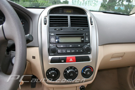 伊蘭特,但由于采用柔和舒適的雙色調,溫暖中凸顯平實。中控臺環繞仿金屬飾條,各個控制鍵大而齊整,儀表臺的面積也相當大,整個車廂內沒有任何突兀的仿木質裝飾,所有的材料都與車型的定位相符合。絲絨座椅的椅面支撐力還有提升空間,不利長途駕駛,不過座位
