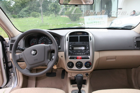 這次我們試駕的車型是賽拉圖的基本型GL,總體來說配置較實用,有電動后視鏡、中控門鎖、電動車窗等實用設備。座椅是普通絨布面料,不是