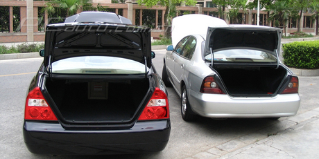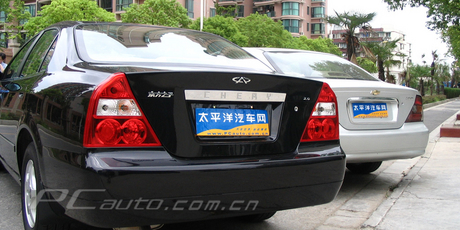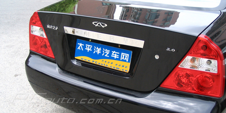 東方之子的尾部大燈由紅色與白色組合而成,這個燈上半部參考VOLVO的設計十分明顯,但總體保留了一定自己的風格,在國產車中算可圈可點。不過奇瑞車尾的“東方之子”與“2.0”的標志顯得太過小氣,給人一種大頭小眼睛的感覺。此外方方正正的車尾造型提供了大容量的后備箱,顯得制作不夠精細,整體感覺是規規矩矩。