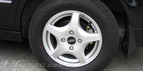 景程標準版采用的是韓泰輪胎,其規格為205/65R15,速度等級為“H”級(可承受210公里/小時);而我們所測試的這款豪華版則裝備更具運動性的205/55R16規格輪胎。而05款東方之子的輪胎,裝備的同樣是來自韓國的韓泰輪胎,規格為205/55/R16,速度等級為“W”級(可承受270公里/小時)。而在鋁合金輪轂的設計上,景程的六幅式輪轂造型相比東方之子的五幅式更加美觀。