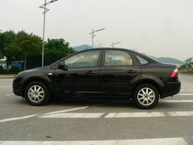 和思域相比,福克斯在外形上設計更具個性化一些,首先從車身望去像一部扎實的小鋼炮,前燈看去具有一定的殺傷力,引擎蓋和車身腰線也充滿了肌肉感。只是筆者認為,相對2.0L系列,1.8L版本沒有加裝車身大包圍(離地間隙高),輪胎只是195/65 R15(2.0L系列是 205/55 R16),所以人們在感觀上沒有那么平穩,也少了些跑味。在此筆者建議購買1.8L系列的車主們能多花點銀子給自己的小福加一個大包圍(應該不用2000元),前后的效果將會截然不同。
