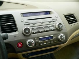如果說只有思域的儀表盤把你迷住了,那看來你對其了解還不夠。思域的中控臺設計也十分吸引人,上面是音響控制板塊,下面是空調控制板塊,上半部分我們就不再詳述。和?怂瓜盗邢啾,思域帶液晶屏顯示的空調系統看上去更加人性化一些,因為你至少知道車內目前處在什么溫度,而下面橫向排列的空調模式選擇按鈕只需輕輕的一按,方便實用。而目前?怂谷盗挟a品都是簡單原始的機械式空調,在此筆者特別申明,機械式空調沒什么不好,只是在國外版本的?怂苟紦碛辛自動空調了,而大陸版本卻還使用老式設計,讓感覺在感情上有些過意不去。這能增加多少成本?為什么思域能做到全球同步?值得思考。