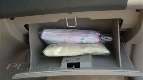 手套箱的容積較小,正如照片中顯示的那樣,兩塊干毛巾就差不多將其撐滿(mǎn)。