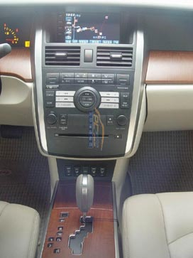 天籟的中控臺看似簡潔,其實按鈕很多,惟排列整齊,邏輯性強,容易操作。觸摸屏式的導航系統也易于掌握。很慶幸天籟沒有選用桃木,因為過多中低檔轎車上仿桃木內飾給人的突兀感覺已無法再讓這種材料體現出高檔和尊貴,細長的儀表臺襯以楓木材料容易讓人聯想起回歸七八十年代的風格。中央以鈦金色澤鑲邊的大型黑色中控面板上的按鍵布局,無疑代表了現代風格,且能將兩種風格很和諧地統一非常不易。真皮包以金屬色澤的排檔與平整光潔的楓木面板搭配好像在古樸家具桌面擺放著的藝術品。