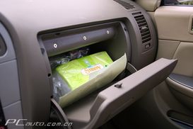 工作人員遞來礦泉水,而我卻發(fā)現(xiàn)在前排根本找不到一個可以容納它的地方,作為一款家庭用車,前排沒有配備杯架確實不應(yīng)該,尤其在這樣的夏天、長途路。