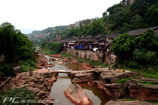 中山古鎮俗稱三合場,又名龍洞場,地處江津市南部山區,距重慶市區125公里,約一個半小時車程,與國家級風景名勝區四面山一脈相連。古鎮背山臨水,場鎮建筑靠水而建,由龍洞、荒中壩、高升橋三條小街連接而成。