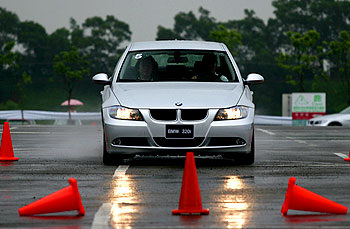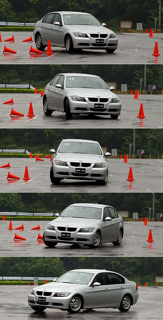 320i的整體表現已經十分優異,過彎時側傾程度輕微不明顯,車輛的循跡性十分令人激賞。但是方向盤在過彎左右反打的時候,從輪胎傳達上來的抵抗力,清楚的傳達至方向盤,兩三圈下來,運動量可也不少,真是名副其實的“運動房車”。3系列搭載的車身穩定系統十分值得夸獎,后驅車型在過彎的時候,很容易因為進彎速度或者是油門控制等原因造成轉向過度的情形。遇到這種情況,方向盤反打會是穩定車身的解決方法之一,然而在事出突然而且沒有經驗的情況之下,很難即時做出反應。這時候3系列的電子系統會主動介入,些微的調整輪胎角度,在不是很嚴重的轉向過度,只要放開油門就可以讓車輛回到穩定的狀況。而且這一套系統控制程度適當,不會剝奪駕駛的樂趣所在,也不會打擾享受快感時候的節奏感。