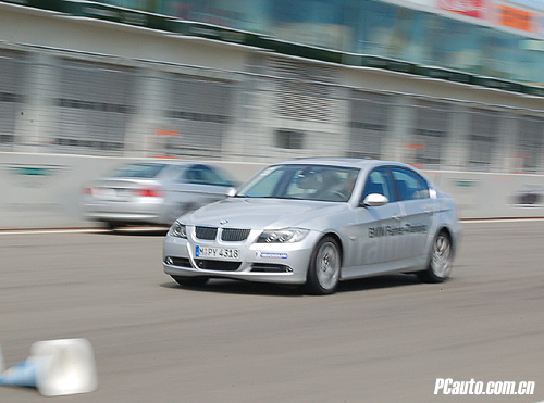 在整個培訓過程中,筆者分別駕駛了裝備6速手自一體變速器(Steptronic)和6速手檔變速器的寶馬330i轎車。前者雖然屬于自動檔變速器,但6速的緊密齒比卻擁有較短的響應時間,無論是起步還是中途加速的反應都幾乎與手動檔車型無異,且換檔過程十分順暢。它可以保證你在激烈駕駛的過程中,不會在手動檔車型的陣容里掉隊。將變速桿輕推至左側,儀表中的檔位顯示從“D”變為“DS”,此時車輛進入運動模式,前后撥動檔把則開始進入手動換檔模式,檔位顯示為“M1”至“M6”。需要指出的是,在急彎到來前迅速剎車降檔的過程中,車輛會選擇以自動升檔而不是斷油的方式來處理轉速過高的問題。這有時會讓你在嚴格跟隨教練的指令做動作時略顯困難,且在自主性和娛樂性上會大一些折扣。但它畢竟是一款民用轎車,必須考慮到日常的使用情況。