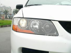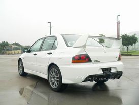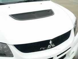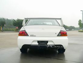 EVO IX的前臉線條感覺十分的凌厲,尤其是一對向中間下壓的眉線讓感到殺氣騰騰,猶如三菱的一貫風格,車的身材并沒有體現強烈的肌肉感,全部通過線條勾勒出整車的氣勢。為了保證發動機的進氣量,EVO將前部的柵隔都去掉,留下簡單的三菱標志,保險杠中部也留出較大的面積給水箱板,這些還不夠,在前鼻引擎蓋上還留有一個進氣口,保證發動機的呼吸。而前保險杠下側所有不必要的開口也被封上,以降低風阻,尾翼采用鑄造而成的垂直部件,擾流板采用中空碳纖維材料制成,兩者有效地降低了車體重心。