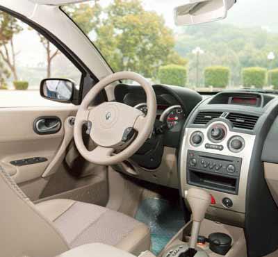 梅甘娜的內飾中最有創意的莫過于飛機推桿式的手剎,不過實際使用上并不十分就手。除了那個比較難打開、打開之后比較難關上、不知道為什么要這樣設計的天窗遮陽篷之外,梅甘娜的車廂再也沒有讓人投訴的地方。