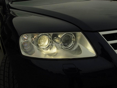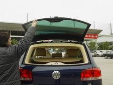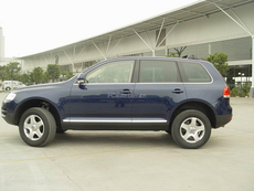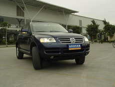 2002年巴黎車展上途銳首次露面,那時我們只能通過雜志等傳媒遠看他的尊容,現在就不同了,途銳給我們的第一感覺就是非常的大,龐大的身軀有著十足的霸氣,不可想象他有著(長:4754毫米;寬:1928毫米;高:1726毫米)尺寸,同時讓你產生了強烈的駕駛欲望,但你細細品味他又是那么的內斂,雖然個子很大,方形超亮氙氣車燈卻烘托出憨厚的本色,有著德國人一貫嚴謹的性格,氙氣大燈不僅可以最大限度的提高車身周圍的亮度,并且比傳統鹵素大燈的使用壽命長很多,感光器能夠在天色變黑、進入隧道后自動切換車燈,保證了駕駛者和行人的安全,特別是途銳的大燈是安裝了透明玻璃外罩的,這樣在越野有效的保護了大燈不被飛石和樹枝損壞。同時還配備太陽能天窗、航空雨刷自動感應功能。