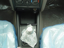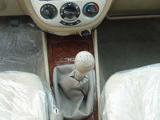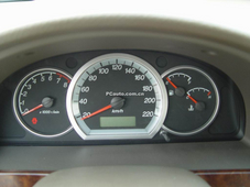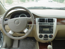 內(nèi)飾篇: 凱越 1.6 MT 凱越的內(nèi)飾屬于讓人一眼看去比較中庸的那種,在十幾萬的價格系統(tǒng)中看上去比較實在,整體內(nèi)飾配色采用上褐色下米黃色的雙暖色調(diào),中間貫穿深色桃木加以裝飾,突出了其商務的氛圍。中控臺看來比較簡約,采用銀色面板,單碟CD音響及空調(diào)的各種旋鈕觸手可及,非常方便易用,和伊蘭特相比在用料和做工方面比較勝出一些。四幅式真皮方向盤大小適中,雙手握上去粗細剛好,在兩個大拇指的有汽車的喇叭按鈕,在必要時可以及時的按下,比較人性化,儀表盤為并排三環(huán)重疊式設計,鍍鉻裝飾,在全黑底色的襯托下異常醒目,而鮮紅色指針更給人以躍躍欲試的沖動。通過這些視覺上的效果,讓我們能夠很明顯的感覺到,凱越在盡力的討好著年輕人的口味。這里要特別提出凱越的波箱和我們一般見到的有所不同,在空檔的狀態(tài)下,檔桿是微微向右傾斜的,開始時小編以為沒有掛空檔,經(jīng)工作人員介紹凱越的變速箱就是這樣的,至于在行駛中的感受,我們在下面即將告訴你。