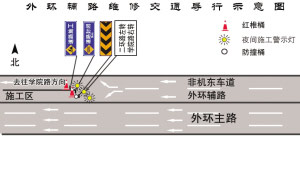 施工期間,西直門北立交橋下南向北由二環輔路去往學院路的人行通道橋將全天封閉,非機動車及行人需繞行西直門輔路立交盤橋匝道或周邊的樺皮廠、北草場天橋以及積水潭路口。學院路 出城方向在北二環外環橋梁位置將全天候占用最外側一條機動車道圍擋施工,交管部門將加派警力進行疏導。