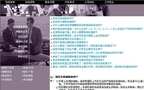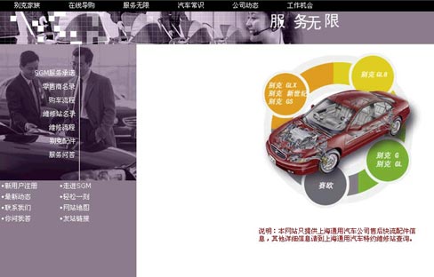 別克的頁面設計能體現其在業界的地位,較多使用flash動畫,頁面的瀏覽速度也較快,布局均勻美觀。