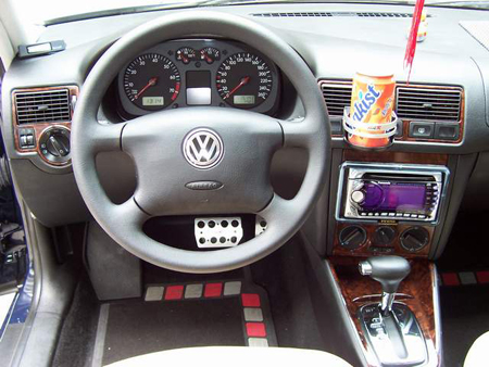 加裝內(nèi)容: 1、換了真皮,但卻封住了兩個側(cè)氣囊 2、換掉了原裝的音響機頭,換成了PANASONIC 8碟機頭; 3、加了喇叭及黑武士功放; 4、加了輪眉; 5、貼了油箱蓋子; 6、加了杯架(原裝的被機頭封住了); 7、加了指南針。