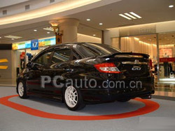 首先我們能看到的是,這臺“City”的車身顏色是廣州本田三廂飛度五款顏色以外的黑色,黑色在雅閣等商務車上能顯示出大氣,在這臺“City”上這種大氣的顏色忽然變成了一種神秘中帶COOL的跑車味度的顏色!三廂飛度讓人最看不順眼的“頭短尾長”的問題在這臺車上好象忽然消失了,看起來非常自然,不象是一臺兩廂改三廂的車,更象一臺純正的跑車。從各個角度看“City”,可以充分展示改裝后它的運動外觀特征。也可以看得出“無限”改裝件的水平之高。