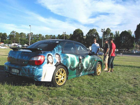 這是在堪培拉舉行的"夏日精靈汽車"上的一輛涂有電影《黑客帝國》人物形象的參賽汽車,以外觀設計先聲奪人。